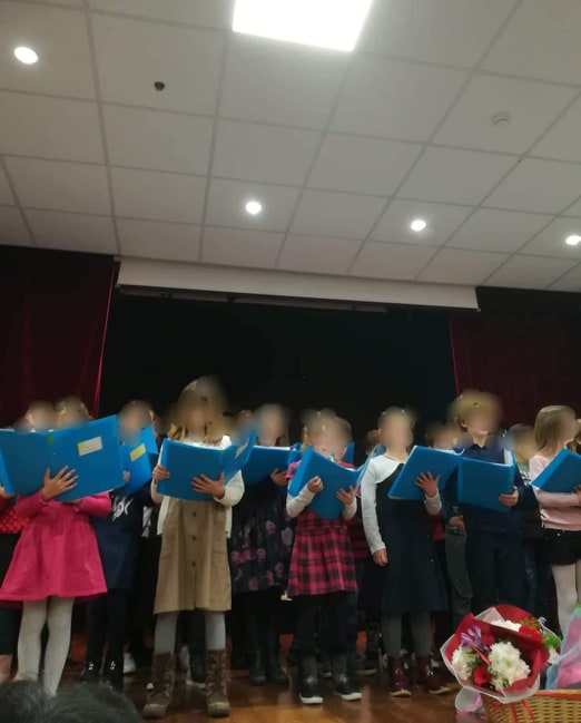 Η εκδήλωση εμπλουτίστηκε από τις ολοζώντανες φωνές της παιδικής χορωδίας του Α’ Δημοτικού σχολείου, με μαέστρο την δασκάλα τους κυρία Μαρία Τσικούρα και τον νεαρό τραγουδιστή Θανάση Σπέλα, σε ένα ευχάριστο ελαφρολαϊκό πρόγραμμα, με συνοδεία πιάνου. Στο πιάνο η κυρία Άλκηστις Ζευγωλή.